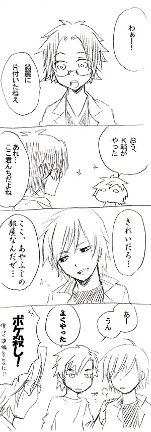 ![]() ![]() ![]() 帰宅後、あやふじの家。 ![]() ネタはタッチですよ。 三人の家は、1キロ圏内にかたまってます。 まさに幼馴染なのだけど、そんなつもりのなかった三人は 「幼馴染いいねえ」と言われて必死に 「いやいや、腐れ縁ですから!」とか言ってた。 ツンデレなのかな!← |